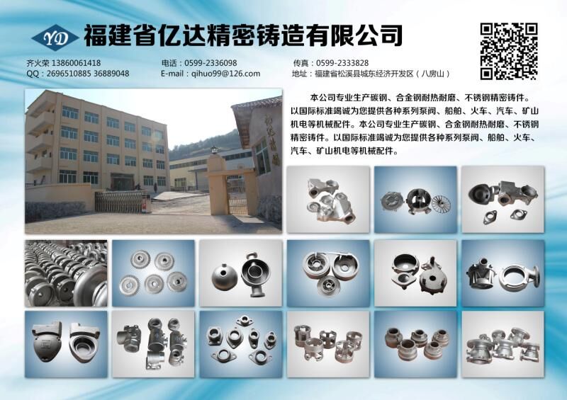 位于福建、浙江、江西三省交界的松溪縣,現(xiàn)擁有硅溶膠工藝精密鑄造生產(chǎn)線,具有年產(chǎn)1000噸各類精密鑄件的生產(chǎn)能力。工廠設(shè)備先進(jìn),技術(shù)力量雄厚,檢測(cè)手段完善;主營(yíng)