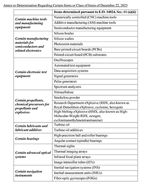 《根據(jù)第14024號行政令第11(a)(ii)節(jié)做出的決定》,外國金融機(jī)構(gòu)直接或間接向俄羅斯出售、供應(yīng)或轉(zhuǎn)讓下列物項,可能會被制裁。